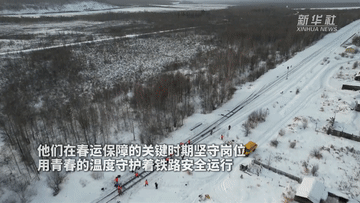 中国铁路哈尔滨局集团有限公司齐齐哈尔电务段塔河信号车间阿木尔作业工队的队员们,踩着深深的积雪,背着重重的工具包,要徒步一两公里才能进入站场工作。他们在春运保障的关键时期坚守岗位,用青春的温度守护着铁路安全运行。