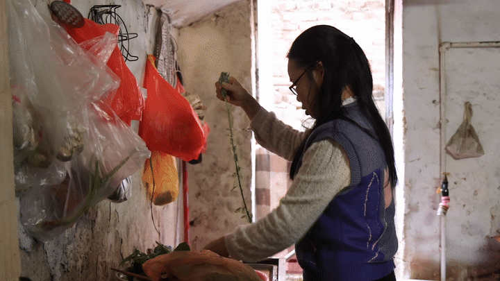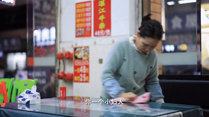 她温柔的目光落在扫地的阿姨身上: