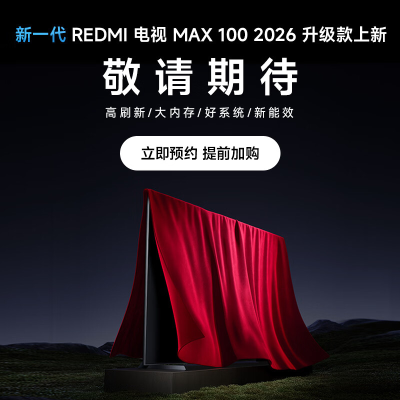 京东小米(MI)REDMI 电视【新一代】MAX 100 英寸 高刷新 / 大内存 / 好系统【提前预约】8799 元直达链接2026 年数码家电政府补贴持续进行中,IT 之家为大家汇总国补领券地址,买数码家电之前记得领取:点此查看。