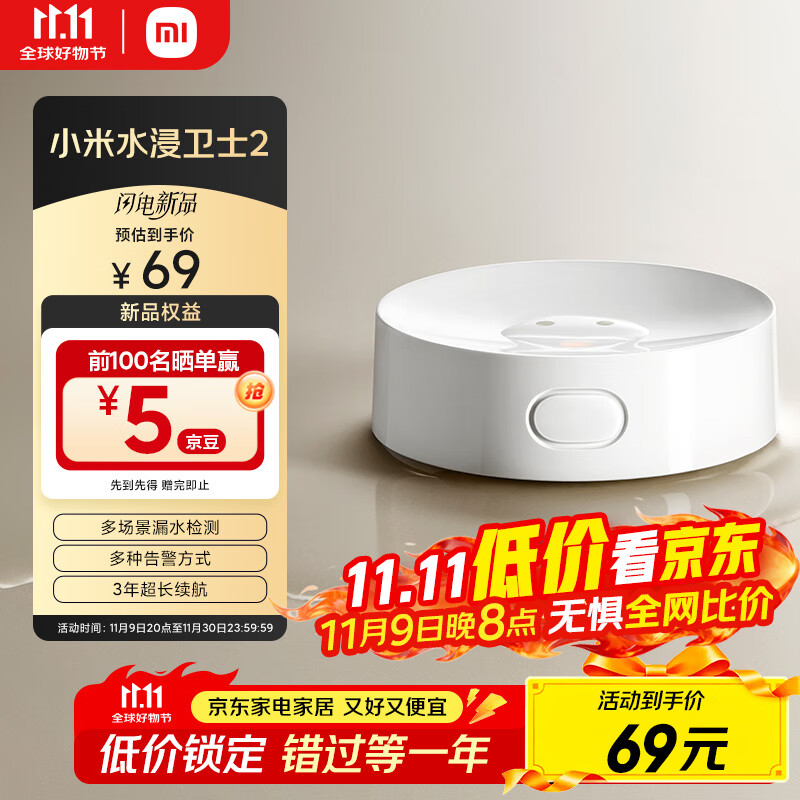 京东小米水浸卫士 269 元直达链接京东 11.11 无门槛红包每天抽 3 次,至高 11111 元:点此抽红包