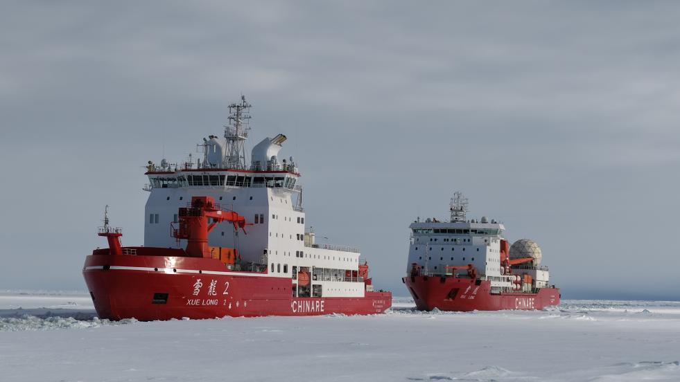 船时12月4日晚间,“雪龙兄弟”成功汇合。船时12月5日下午3时许,“雪龙2”号已将“雪龙”号引航至预定作业点,两船将在该作业点共同完成后续卸货任务。