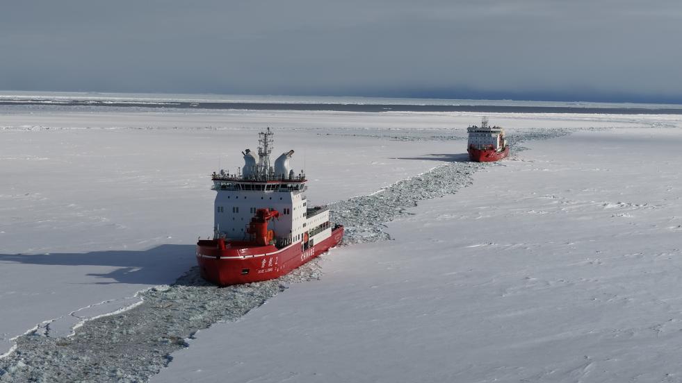 第42次南极考察丨“双龙探极”:“雪龙2”号为“雪龙”号破冰引航