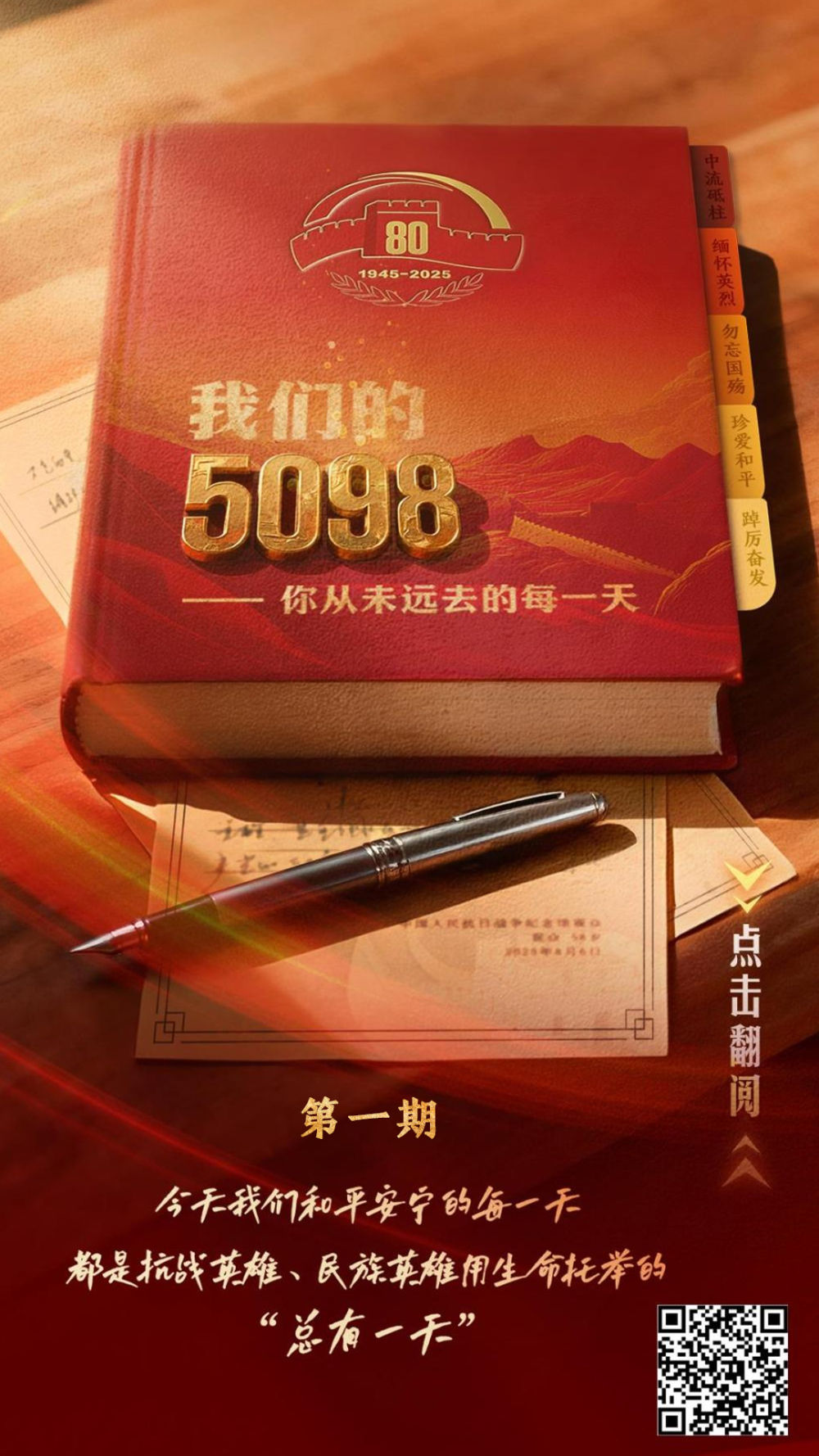 从1931年9月18日至1945年9月2日四亿五千万中国人民经过14年浴血抗战共计5098天今年是中国人民抗日战争暨世界反法西斯战争胜利80周年我们走进全国各地抗日战争纪念馆精选了5098位观众留言纪念我们从未忘记的5098天今天我们和平安宁的每一天都是抗战英雄、民族英雄用生命托举的“总有一天”■我们的5098——“9·18”是5098的第一天第1期我们精选365位来自中国人民抗日战争纪念馆观众的
