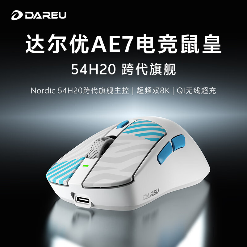 达尔优 AE7 双模游戏鼠标今起首销:Nordic 54H20 主控、双 8KHz 回报率,548.3 元